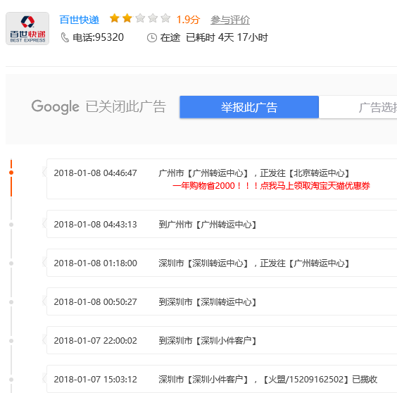 快遞在廣州轉(zhuǎn)運(yùn)中心2天,沒有下一步動態(tài),請幫助處理。