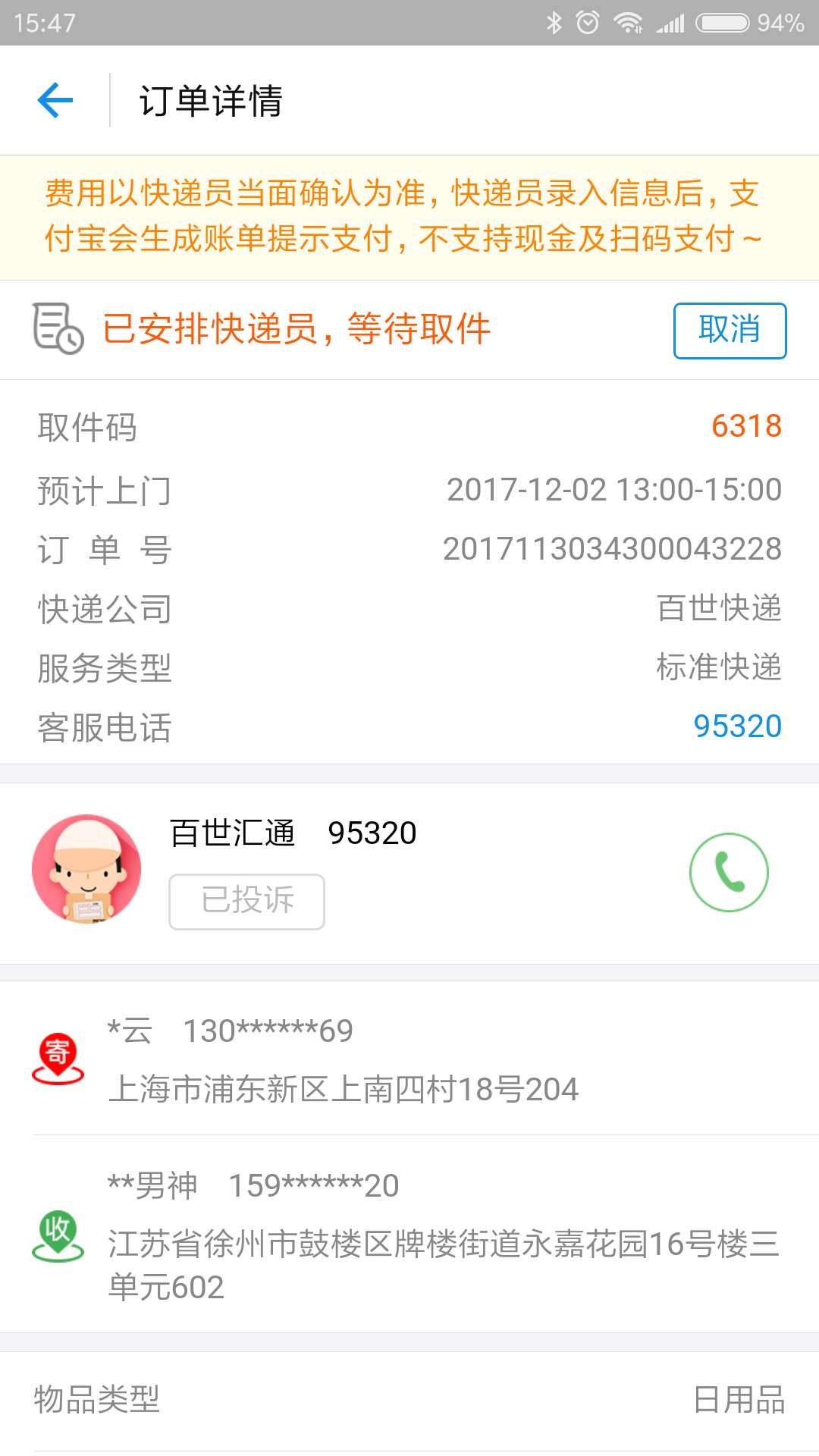 預約1點-3點上門取件,一直沒有來取件,聯(lián)系客服說延遲,讓我打站點電話,打了要么沒有人接聽要么就是通話中,再次聯(lián)系客服,說沒有找到我的訂單!