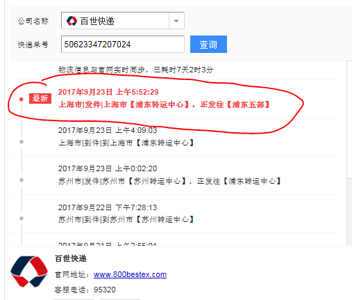 快遞到達(dá)浦東5部之后沒(méi)有派件,是否有更新進(jìn)度? 快遞單號(hào):50623347207024